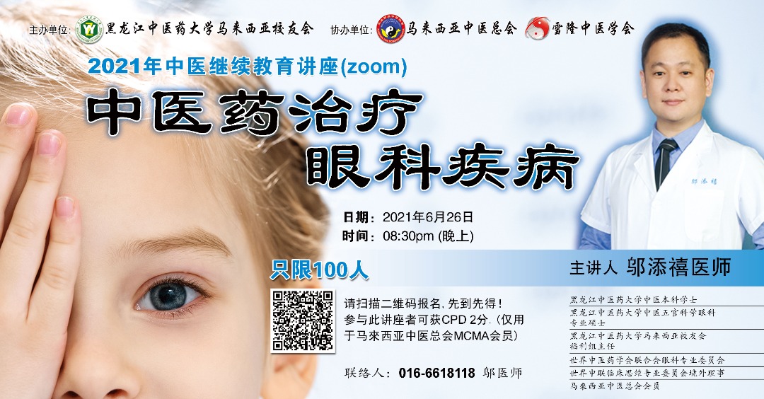 3. 马来西亚中医总会(MCMA)給予此講座,继续專業教育(CPD)学分 2分。僅适用于MCMA 会员。