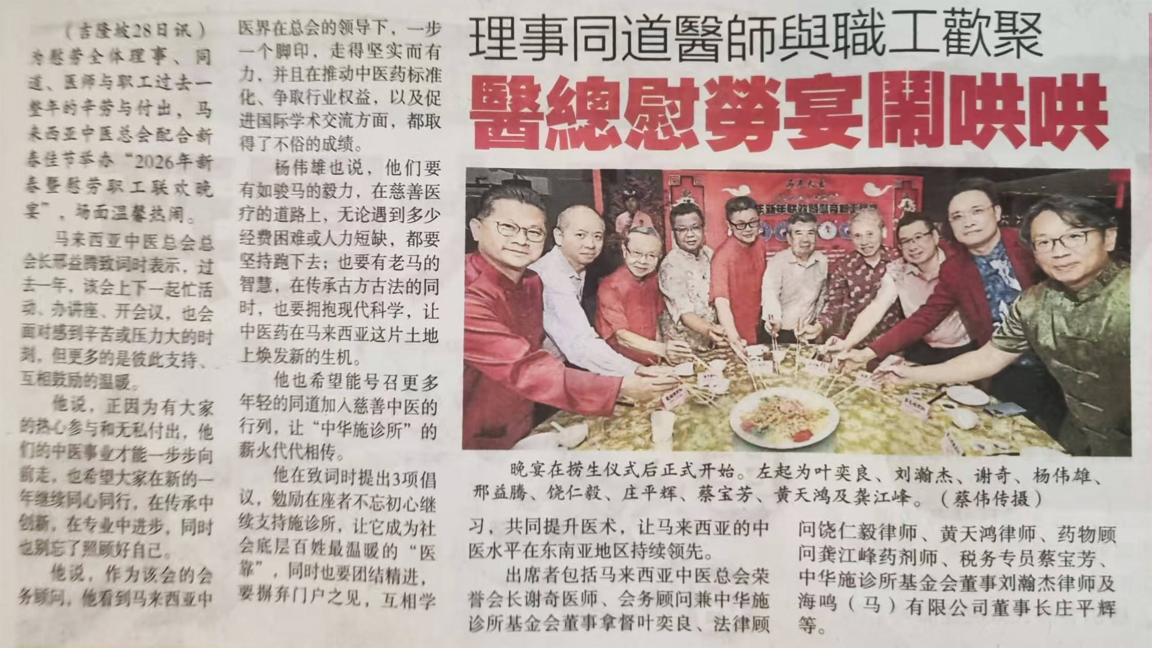 马来西亚中医总会暨属下组织庆祝2026年新春联欢会暨慰劳职工宴会